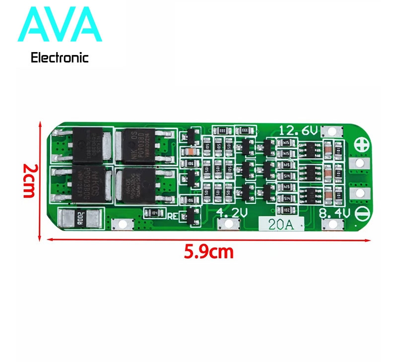 مشخصات فنی ماژول شارژ و دشارژ BMS باتری لیتیومی ۳ سل ۲۰ آمپر: